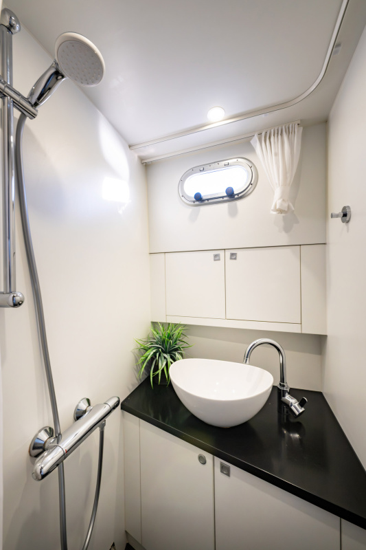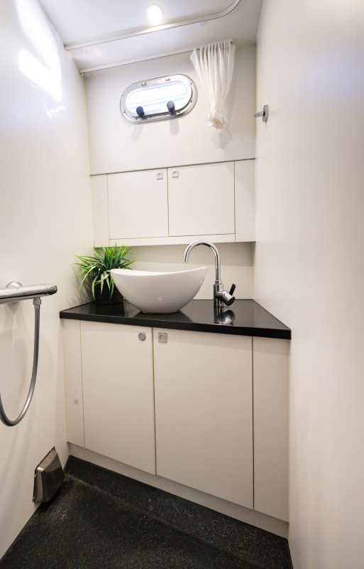 De eigenaarshut beschikt over een comfortabel Frans bed met directe toegang tot een separate douche- en toiletruimte. Beide zijn voorzien van een wastafel en praktische bergruimte. De gastenhut biedt een volwaardig tweepersoonsbed.