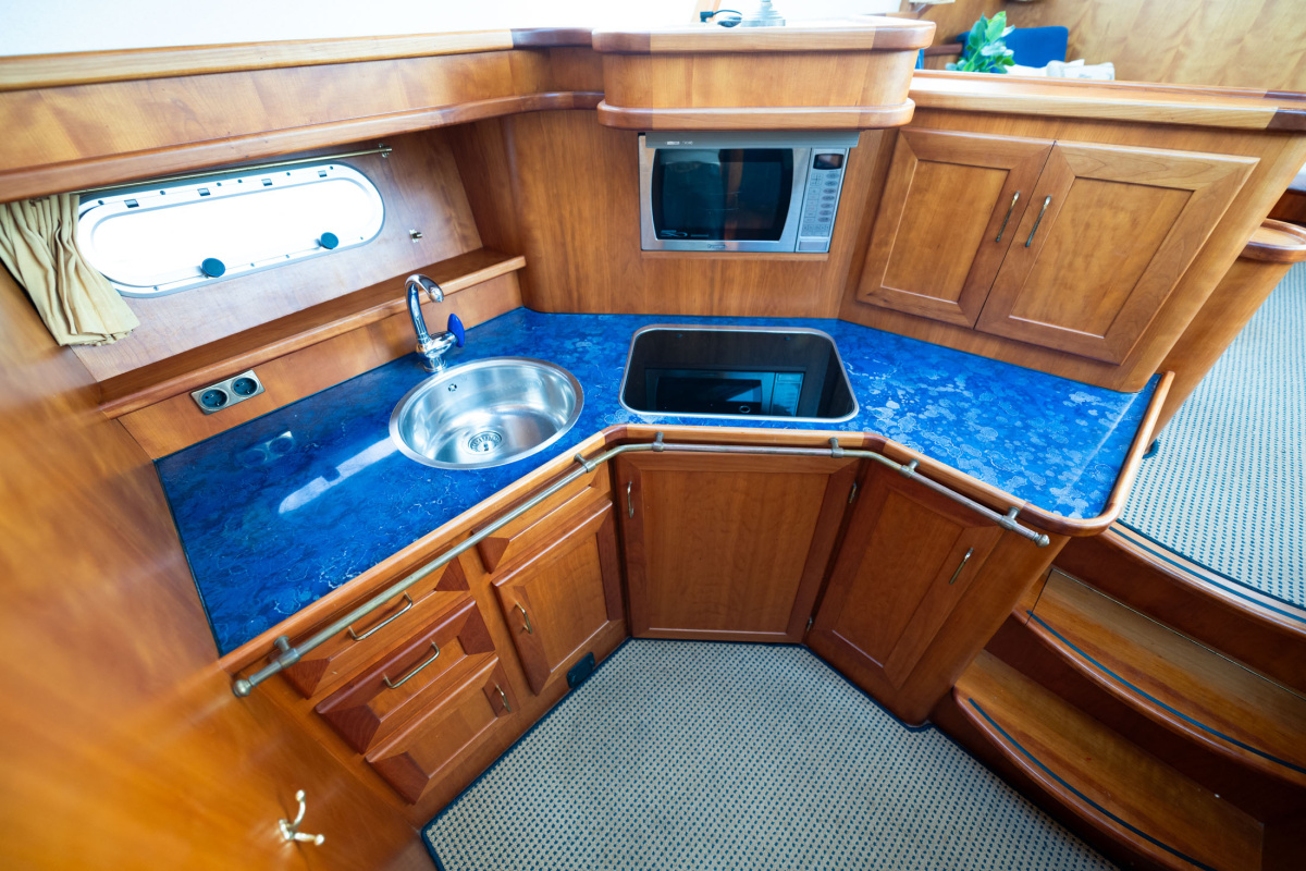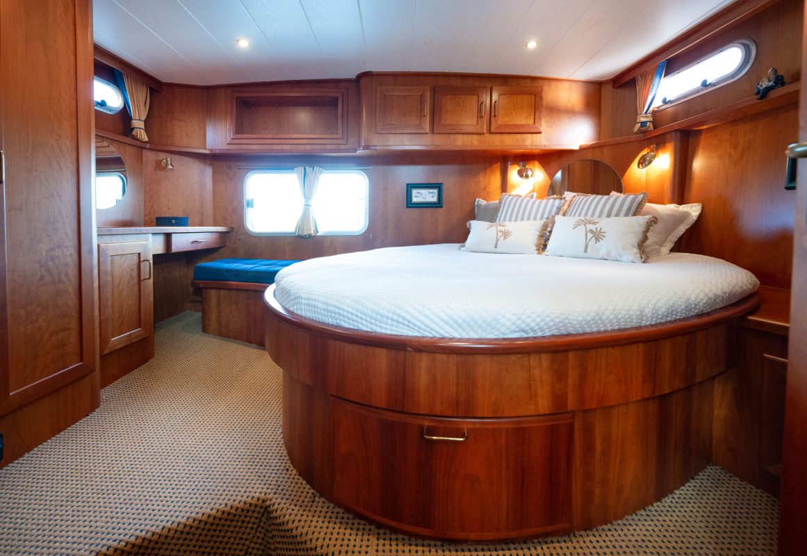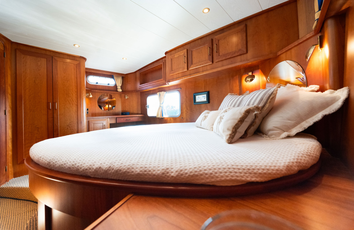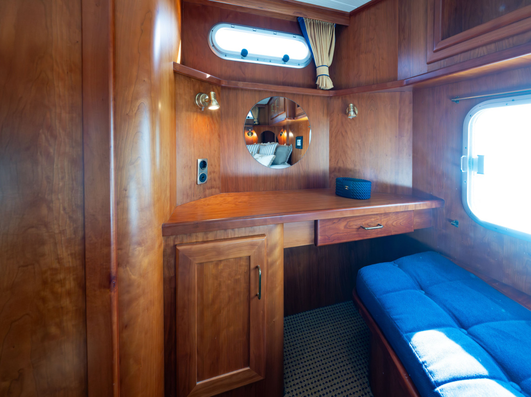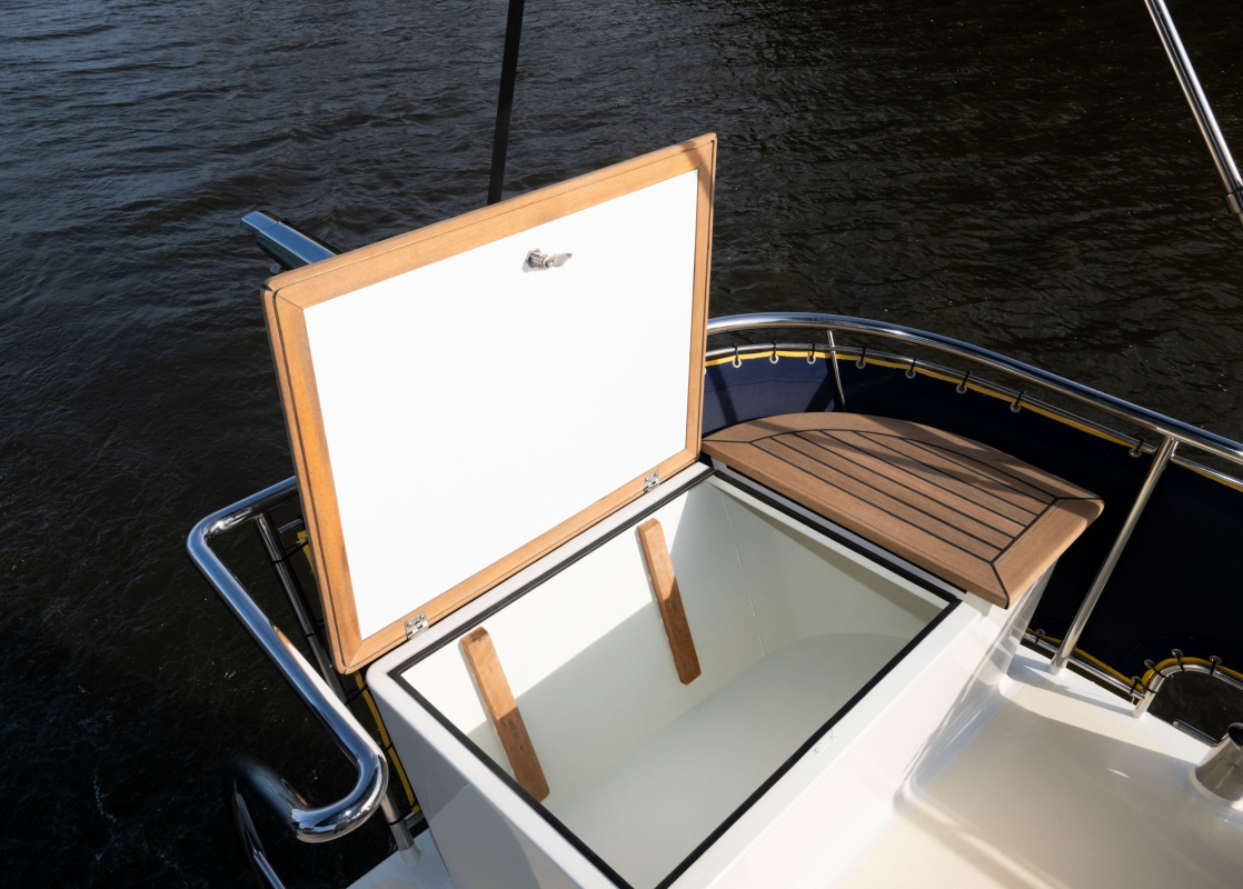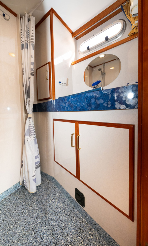 Binnen wordt u verwelkomd door een warm en stijlvol Italiaans kersenhouten interieur, waar vakmanschap en sfeer samenkomen. Een perfecte combinatie van comfort en klasse, ideaal voor ontspannen tochten én lange reizen.